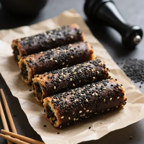 傳統美味「芝麻卷」,筋道面皮包裹著細磨芝麻餡。製成後芝麻香濃郁,每一口都醇厚香甜,扎實又滿足,早餐或點心的不錯選擇!